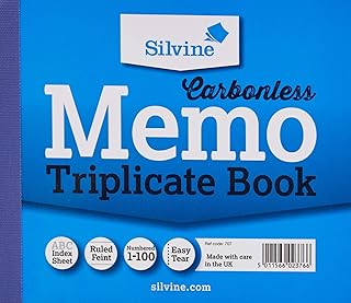 Silvine Triplicate Livre Carbonless Memo Ruled Feint 1-100 105.5 x 125.5 mm Lot de 5