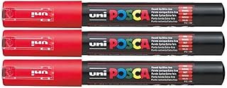 Uni-Posca-PC- 1 m Rouge Extra Fine Marqueur peinture à pointe ogive 1 mm, peut écrire sur des surfaces en verre, bois, métal plastique en tissu (Lot de 3)