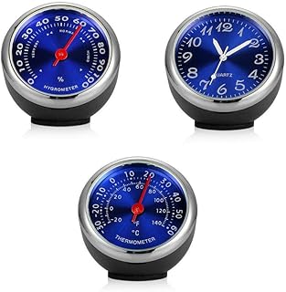 Lot de 3 hygromètres de voiture pour tableau de bord de voiture, horloge, thermomètre hygromètre, grille d'aération, mécanique à quartz avec batterie