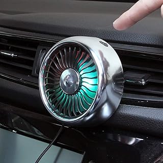 Ventilateur USB pour grille d'aération de voiture avec lumière colorée/ventouse, ventilateur USB de voiture, mini climatiseur de voiture à clip (ventilateur à grille d'aération, argent)