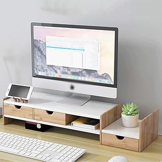 Support de Moniteur en Bois Réhausseur d'écran Organiseur de Bureau Ergonomique Support Moniteur pour PC Ordinateur Portable Boîtes de Rangement Stockage Porte Stylo Livre Maison Bureau