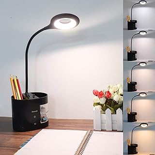 Lampe de Bureau LED Enfant, Deaunbr Lampe de Bureau Lampe de Bureau Sans Fil USB Rechargeable Dimmable 5 modes x 5 niveaux Flexible Lampe de lecture avec support de téléphone, porte-stylo et rangement