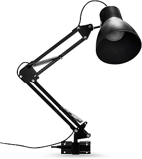 Fulighture Lampe de bureau vintage - Bras articulé en métal - Réglable - Lampe de bureau avec socle et pince avec C-Attack - Lampe de lecture agréable pour les yeux - Lampe de bureau - Lampe de chevet
