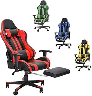 MFAVOUR Chaise Gaming en Cuir Chaise de Bureau Pivotante Fauteuil Ergonomique avec Appui-tête et Oreiller Lombaire, Hauteur de Siège/Accoudoirs Règlable-Expédié Vendeur Plus Rapide