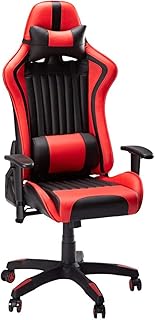 SLYPNOS Chaise Gaming, Chaise Gamer, Fauteuil Gaming,Fauteuil de Bureau pour Racing, Chaise de Gaming en Cuir PU, Coussin Lombaire et Appui-tête, Hauteur Réglable, 150 kg de Capacité -【Rouge】