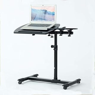 DDAWMPCS Réglable en Hauteur Bureau d'ordinateur Mobile Table,Table Bureau Ordinateur Portable Colonne Montante Table de roulement Station de Travail pour Debout ou Assis-Noir 71x40cm(28x16inch)