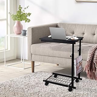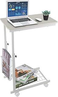 Bureau d'ordinateur avec Roues,Bureau d'ordinateur réglable en Hauteur,avec Rangement Table d’appoint,Bureau d'ordinateur pour Canapé Lit Blanc