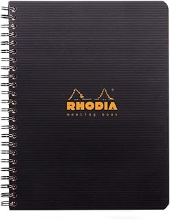 Rhodia 119941C - Cahier Spirale Reliure Intégrale Meeting Book Noir - A5+ - Pré-Imprimé Date/Notes/Action - 160 pages Détachables - Papier Clairefontaine Blanc 90 g/m² - Polypro