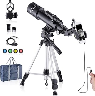 Télescope Astronomique, 70 mm Portable Réfraction Télescope avec Trépied en Aluminium Réglable, Facile à Monter et Utiliser, Idéal pour Les Enfants et Adultes, Observer des Etoiles, Lune, Paysage