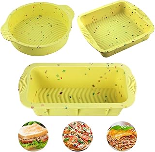 Moulle Silicone Patisserie, Lot de 3 Moules à Gâteau en Silicone, Forme Ronde, Forme Carrée, Rectangle Anti-adhésif, Moules à Gâteaux, Moule à Pain, Moule à Muffins, Moules à Tarte