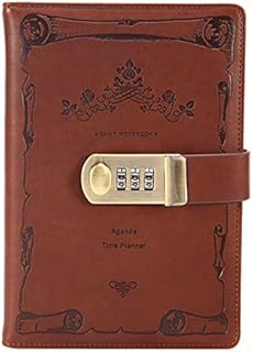 Ai-life Rétro Vintage PU Cuir Carnet de Notes Agenda Planificateur Organisateur avec Serrure à combinaison, Cahier/Journal Bloc-notes/Aidemémoire Cadenas Carnet, Porte-stylo(200x130mm)