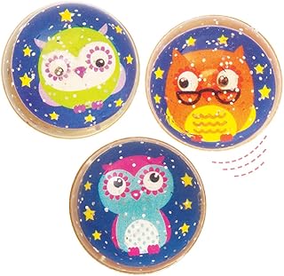 Baker Ross AX602 Balles Ultra Rebondissantes Petits Hiboux À Paillettes - Paquet De 10, Cadeaux Pour Les Anniversaires D'Enfants Et Les Jouets De Plein Air