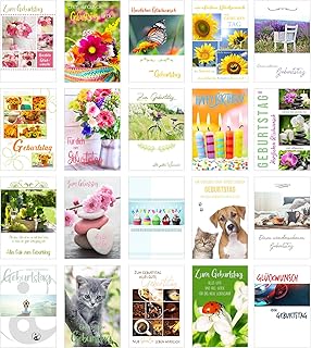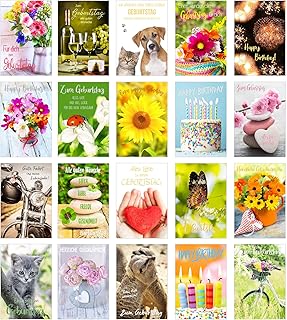 Edition Seidel Lot de 20 cartes d'anniversaire de qualité supérieure avec enveloppe, carte de vœux pour homme et femme