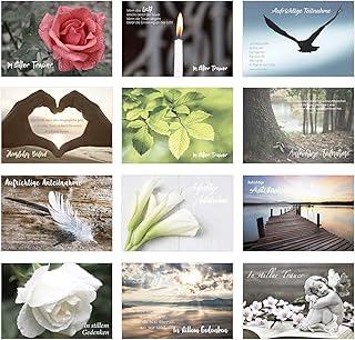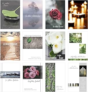 Lot de 12 cartes de condoléances dignes avec enveloppe I DIN A6 I Brillant I Cartes de condoléances modernes I Qualité supérieure I Motif naturel dv_476